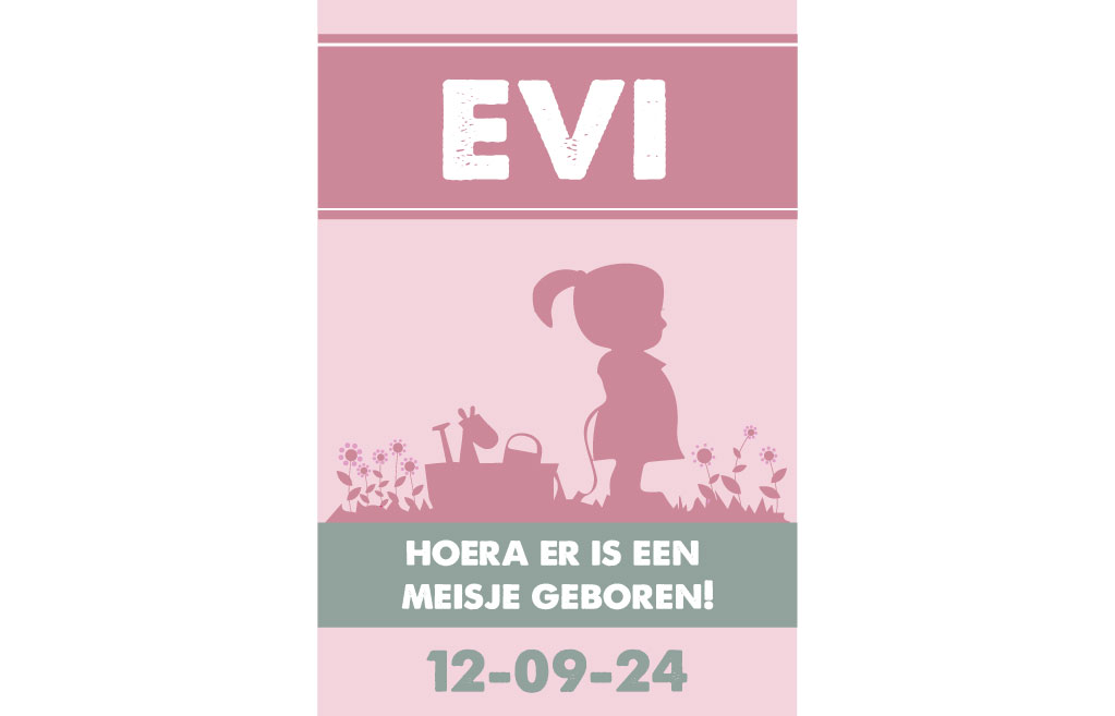 Een geboorte spandoek met de naam van het pasgeboren kindje is een prachtige manier om de komst van een nieuwe spruit te vieren. Stel je een spandoek voor waarop de naam van het meisje staat, omlijst door vrolijke bloemen die het geheel opvrolijken. In het midden van het spandoek zie je een elegante silhouet van een klein meisje dat speelt in een tuin.