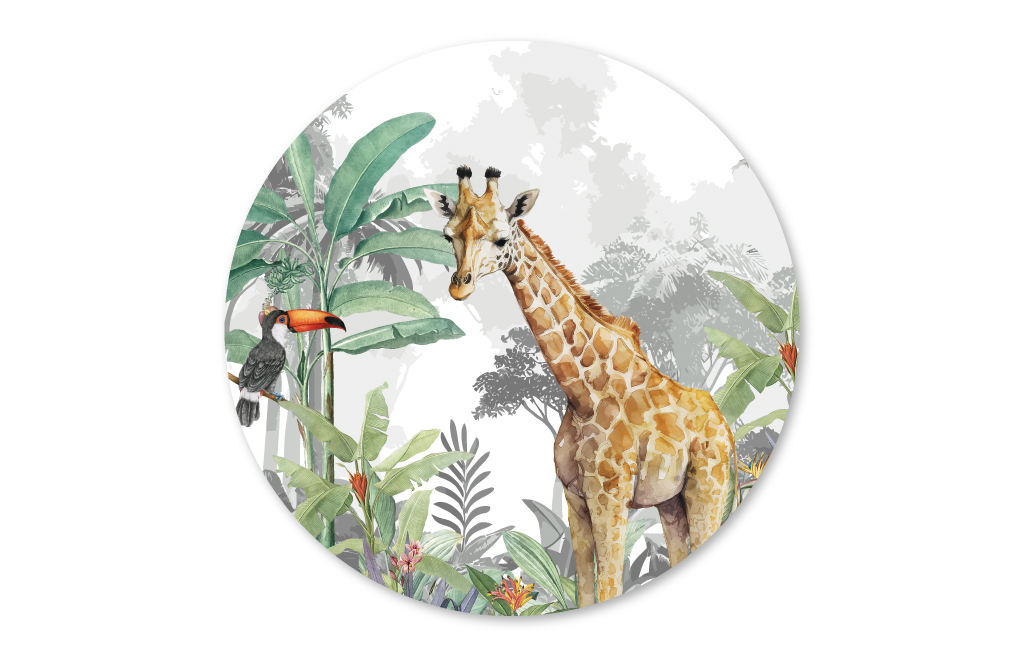 Muurcirkel Jungle met giraffe en toukan