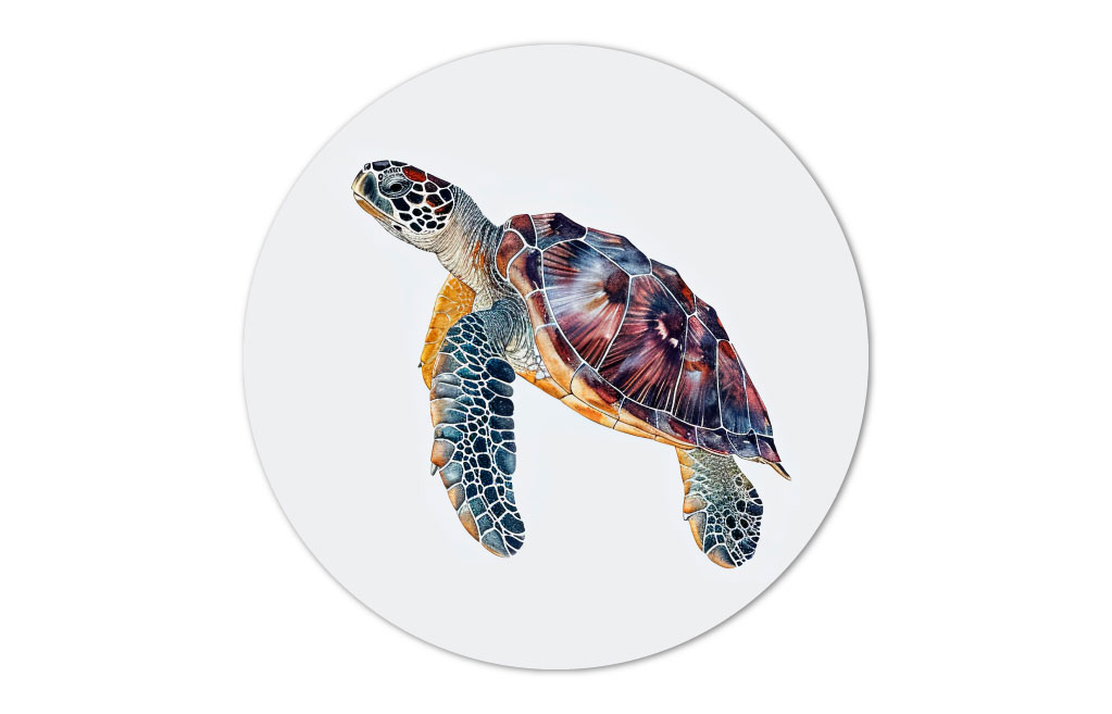 Een muurcirkel met een prachtige zeeschildpad is een indrukwekkende toevoeging aan ieder interieur. Op de cirkel komt de zeeschildpad tot leven in levendige kleuren en gedetailleerde vormen.