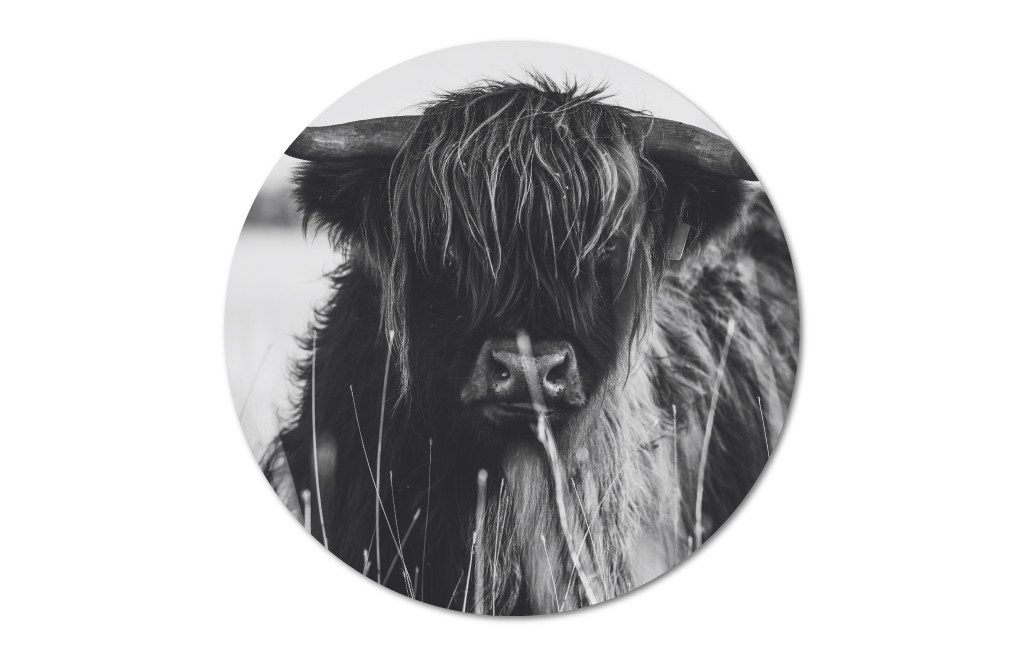Muurcirkel schotse hooglander zwart wit