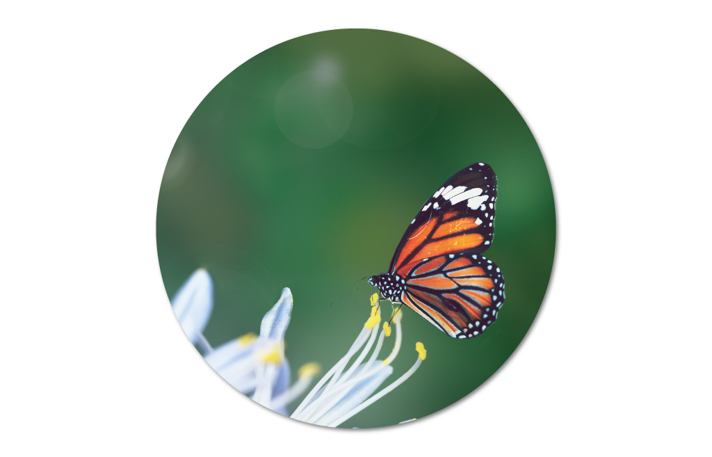 Een muurcirkel met een afbeelding van een vlinder op een bloem brengt de schoonheid van de natuur op subtiele wijze in je interieur. De sierlijke vleugels van de vlinder en de delicate bloemblaadjes zorgen voor een rustgevend en harmonieus geheel. Door de ronde vorm van de muurcirkel ontstaat een zachte uitstraling, die ideaal is voor een moderne of natuurlijke woonstijl. De kleuren en het detail van de vlinder en bloem trekken direct de aandacht, en de muurcirkel kan dienen als een verfijnd accentstuk in elke kamer. Perfect voor wie houdt van een kalme, natuurlijke sfeer in huis.