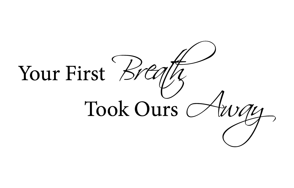 De muursticker met de tekst "Your first breath took ours away" is een prachtige manier om een gevoel van verwondering en liefde uit te drukken. Deze zin vangt het magische moment waarop een nieuw leven begint, een moment dat ouders en geliefden diep ontroert.