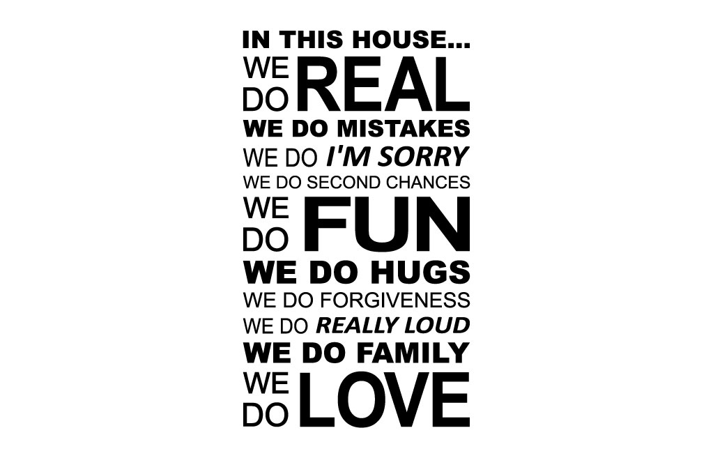 Deze muursticker geeft weer hoe er geleefd word in huis, deze mooie tekst op de muur staat voor het hele gezin.